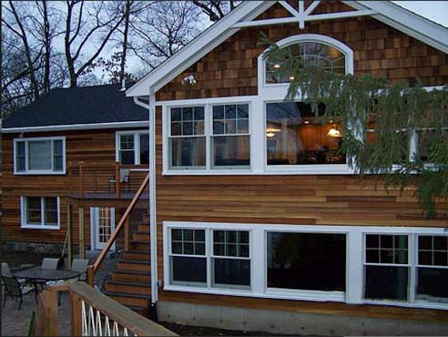 This house, high on a hill overlooking Lake Cochituate's South Pond didn't grow any in this remodeling, but it was transformed immensely to great effect.