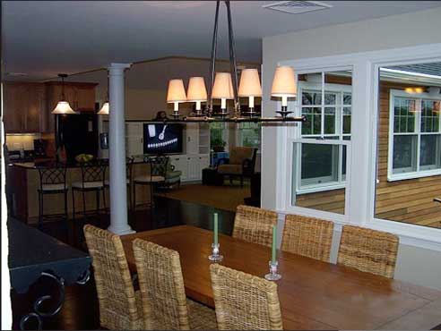Now fully furnished, you get the full appeal looking back from the dining room into the great family room off the kitchen