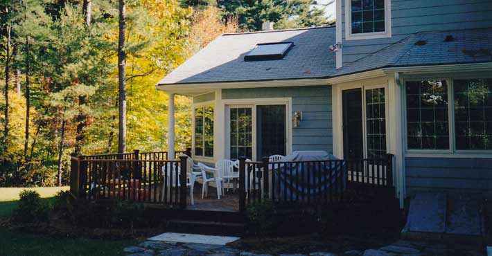 A basic colonial house added a family room off a renewed kitchen with big deck off the back.